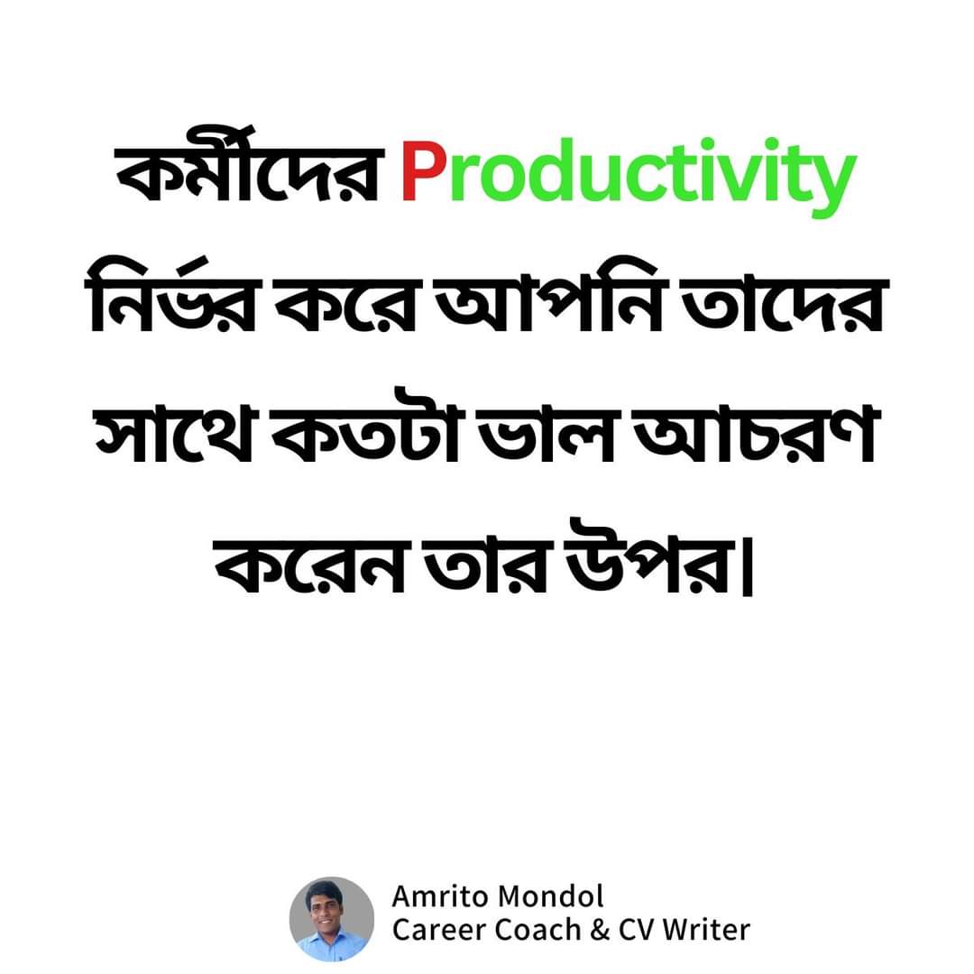 কর্মীদের Productivity নির্ভর করে আপনি তাদেরসাথে কতটা ভাল আচরণকরেন তার উপর।