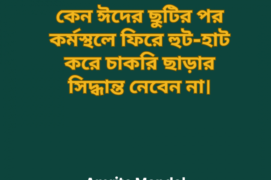 ঈদের ছুটির পর কর্মস্থলে ফিরে হুট-হাট করে চাকরি ছাড়ার সিদ্ধান্ত নেবেন না